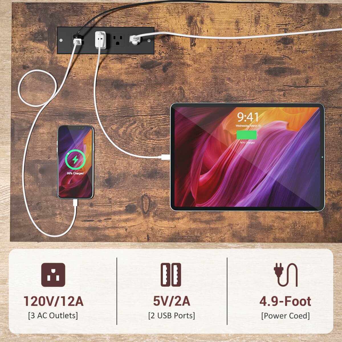 Bar Cabinet with Built-in Outlet - The built-in power strip with 3 outlets and 2 USB ports for added convenience, which help you easily charge the coffee maker, bar accessories, lamp, glowing decorations and other electrical appliances.