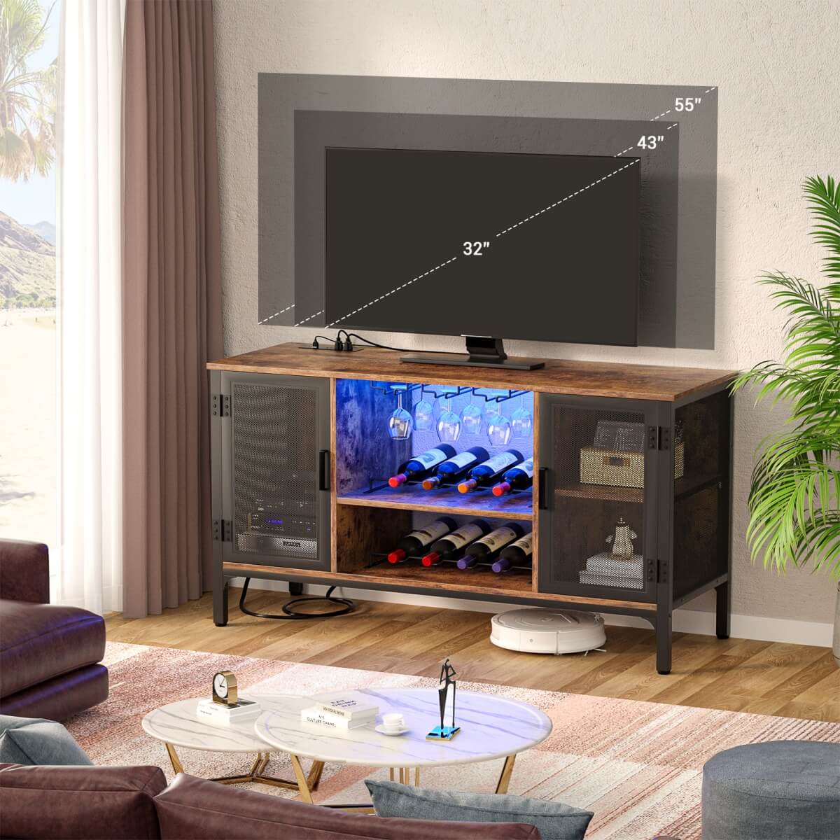 Wine Bar Cabinet with Power Outlets & LED Lights, Adjustable Wine Racks